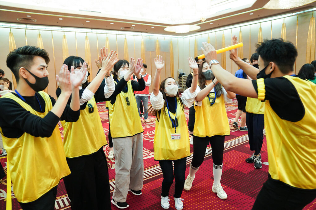 初日は開会式後、4チームに分かれて対抗の室内運動会で快い汗をかいたあと、夕食を兼ねた交流会で親睦を深め、翌日はスキルアップ研修とグループ別討論・発表を行った。