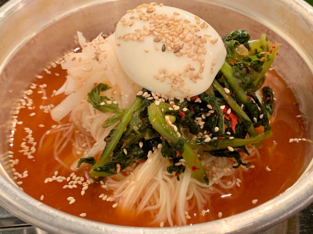 〆には酸っぱ辛く、冷たい麺料理をいただき、