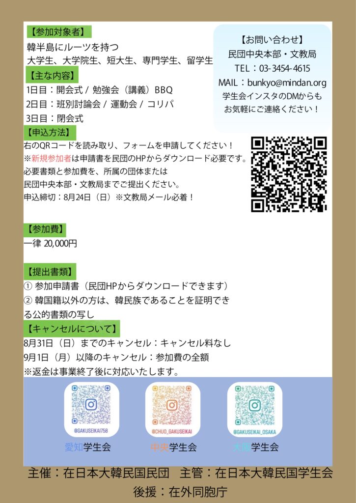 在日同胞の大学生・大学院生・短大生・専門学生の皆さん!