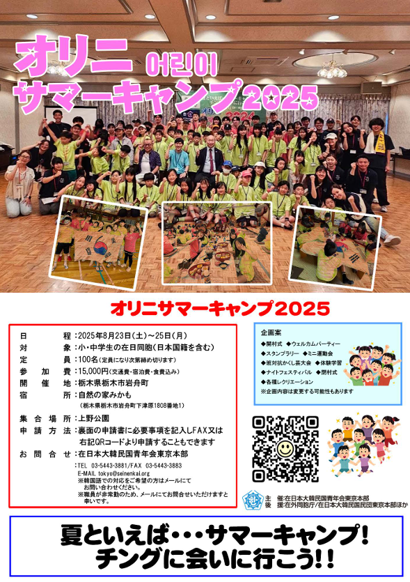 対 象:韓半島にルーツを持つ小学校1年生〜中学校3年生(日本籍含む)